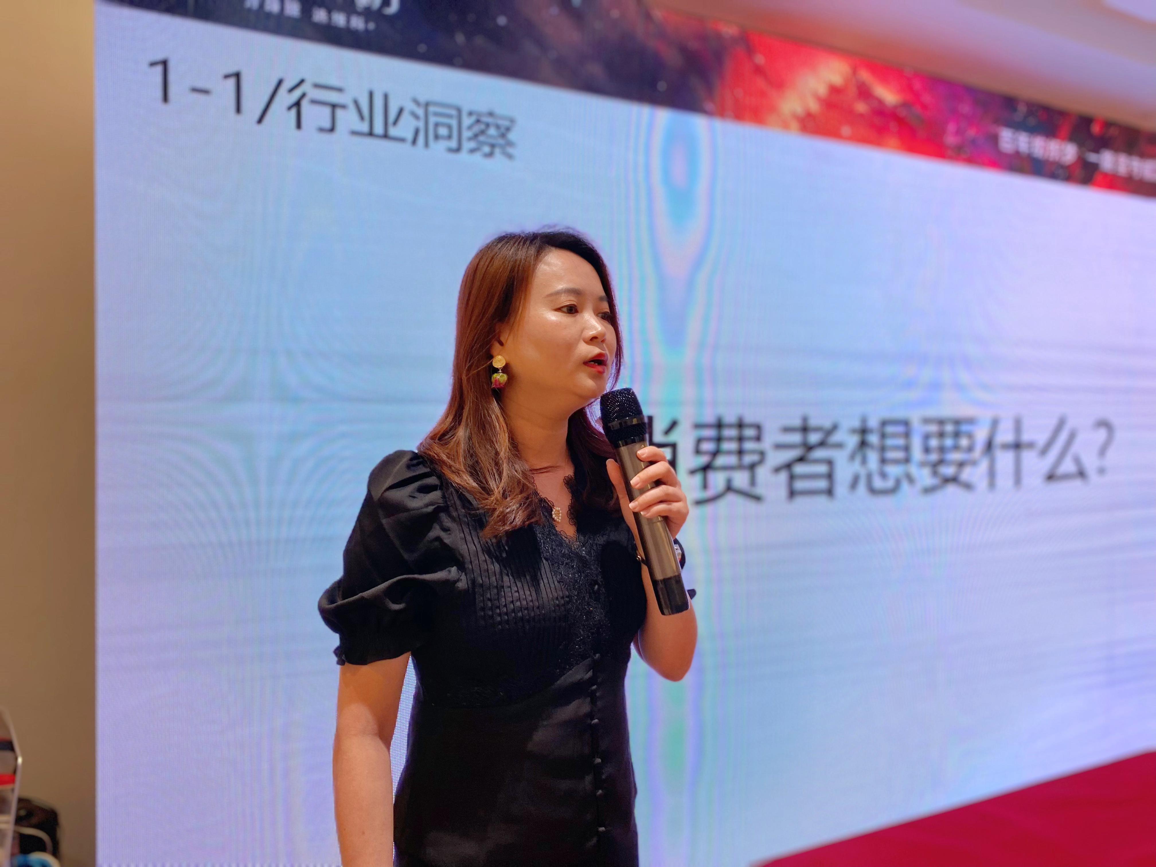 品牌推廣部經(jīng)理畢優(yōu)曉女士從品牌背景、主題發(fā)布、產(chǎn)品發(fā)布和品牌營(yíng)銷四個(gè)方面闡述了秋冬擴(kuò)大聲量的動(dòng)作,帶來(lái)新品上市方案。