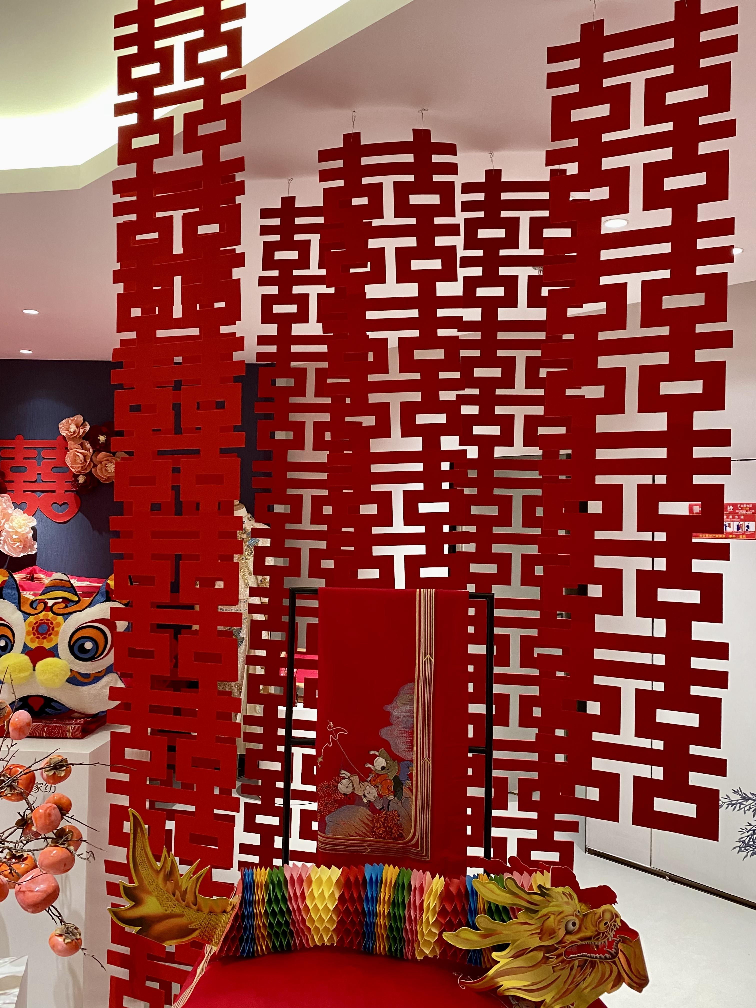 婚慶區(qū)通過(guò)精美的垂掛之“囍”、婚禮唱片機(jī)、維科喜樹(shù)等道具營(yíng)造出浪漫而喜慶的氛圍,創(chuàng)造了一個(gè)令人陶醉的夢(mèng)境。